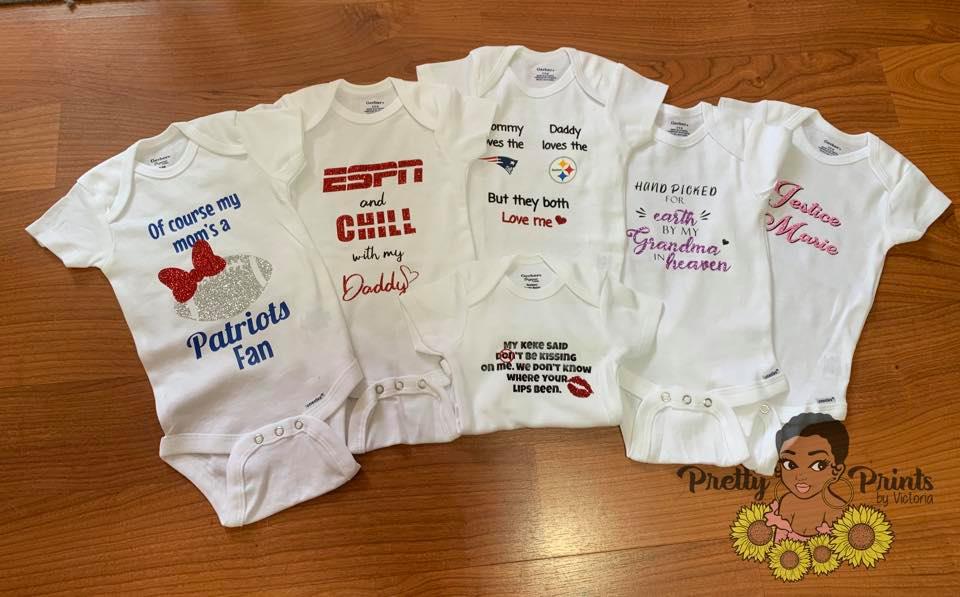 Five Onesies, Bling Binky, Mom/Daughter set, Blanket, Wipes, and Headwrap.