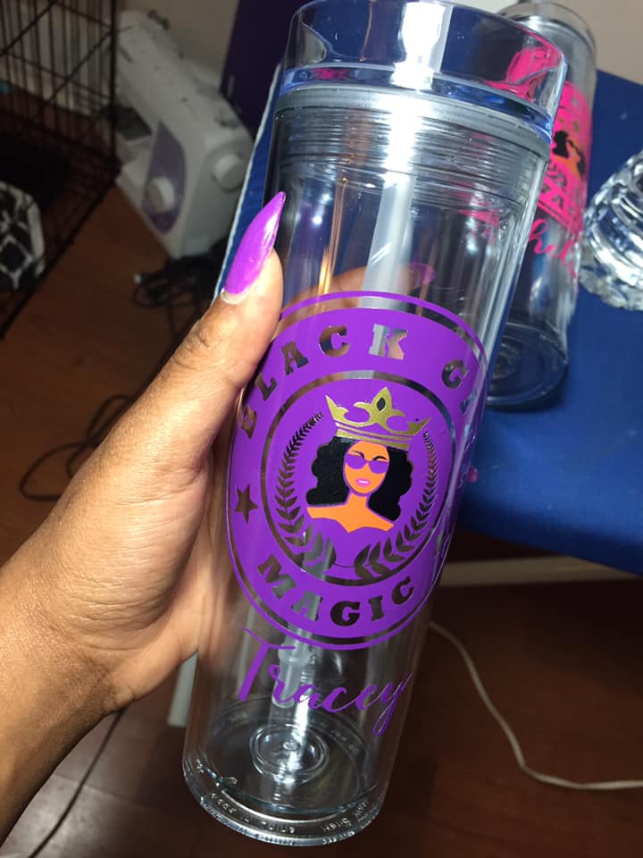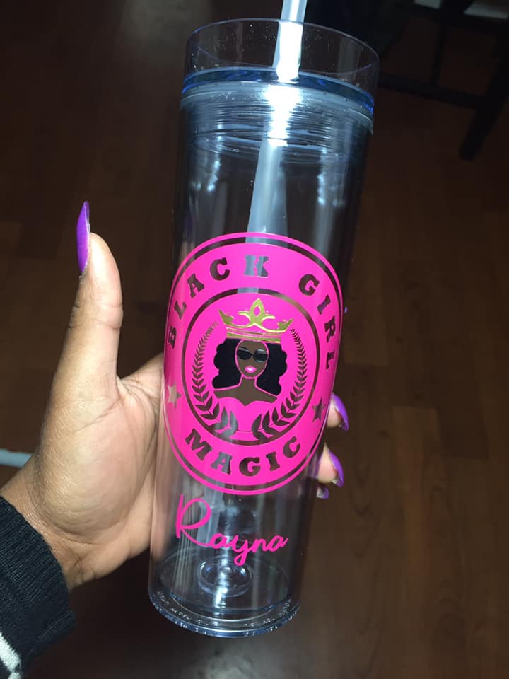 *Skinny Tumbler is a 16oz double wall insulated acrylic tumbler, individually personalized using high quality, permanent, 'outdoor grade' adhesive vinyl in your choice of font colors with our Signature Calligraphy font. If you have a specific font request let us know!