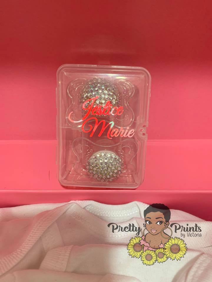 *Please remember that the pacifiers are for prop/decoration only and can be a choking hazard. If you do plan on taking photos with the product make sure to check for any loose stones before allowing the child to use the product. Pretty Prints is not responsible for your child ingesting any or all parts of the product.
