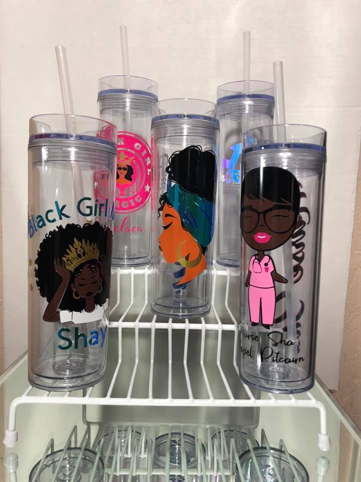 *Skinny Tumbler is a 16oz double wall insulated acrylic tumbler, individually personalized using high quality, permanent, 'outdoor grade' adhesive vinyl in your choice of font colors with our Signature Calligraphy font. If you have a specific font request let us know!