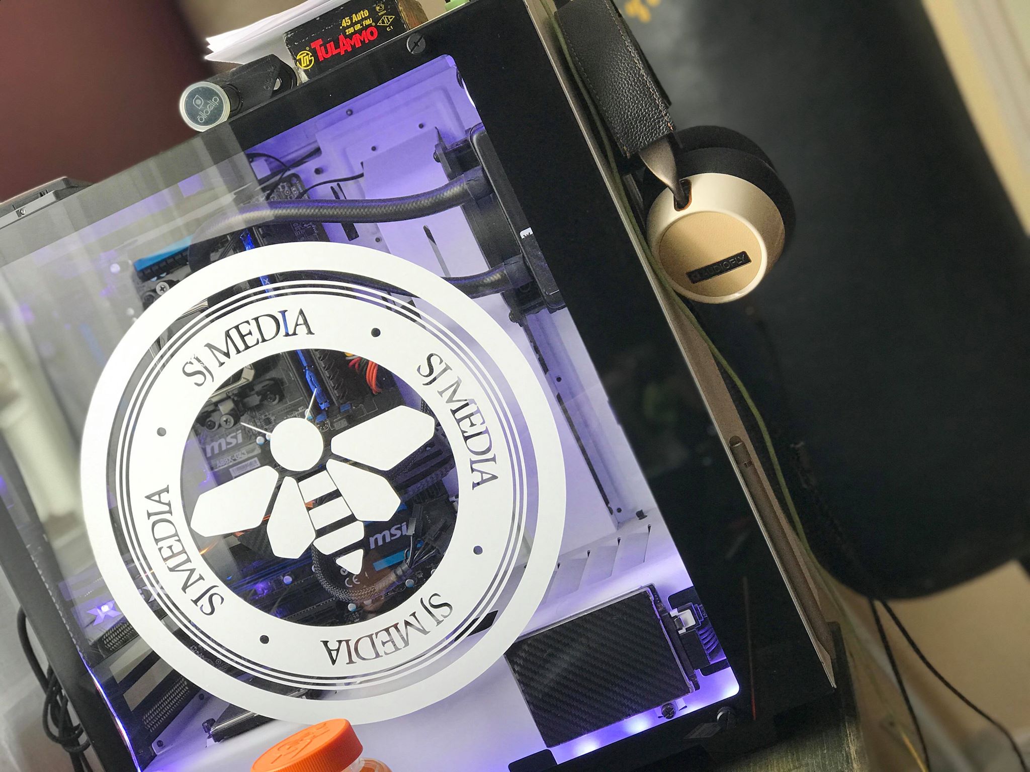 The second photo is the decal pictured on the customer's PC tower.