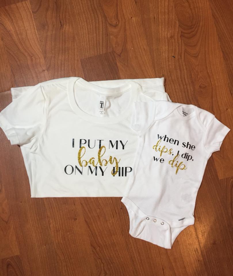 One of my favorite parent/kid sets that I've created! Super cute in black and gold but it can be customized with any color shirt, font style, or font color and can be put on a tee-shirt, long sleeve shirt, or sweatshirts.