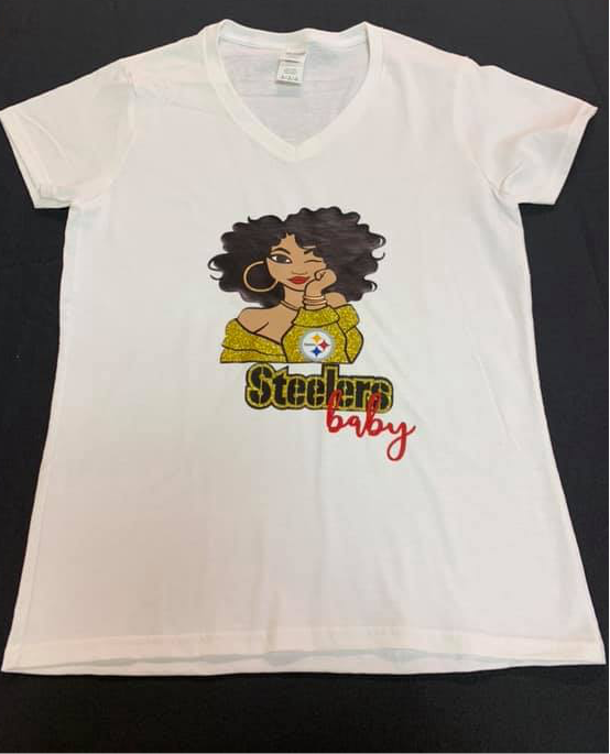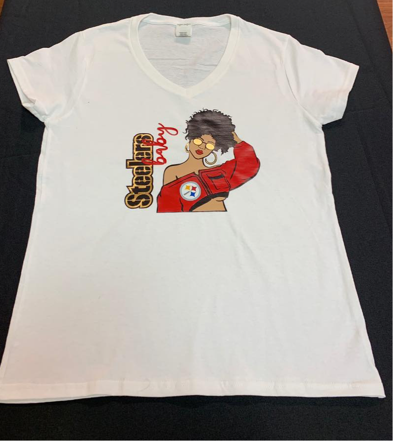 Design can be customized with any color team, shirt color, or font color and can be put on a tee-shirt, long sleeve shirt, or sweatshirts.